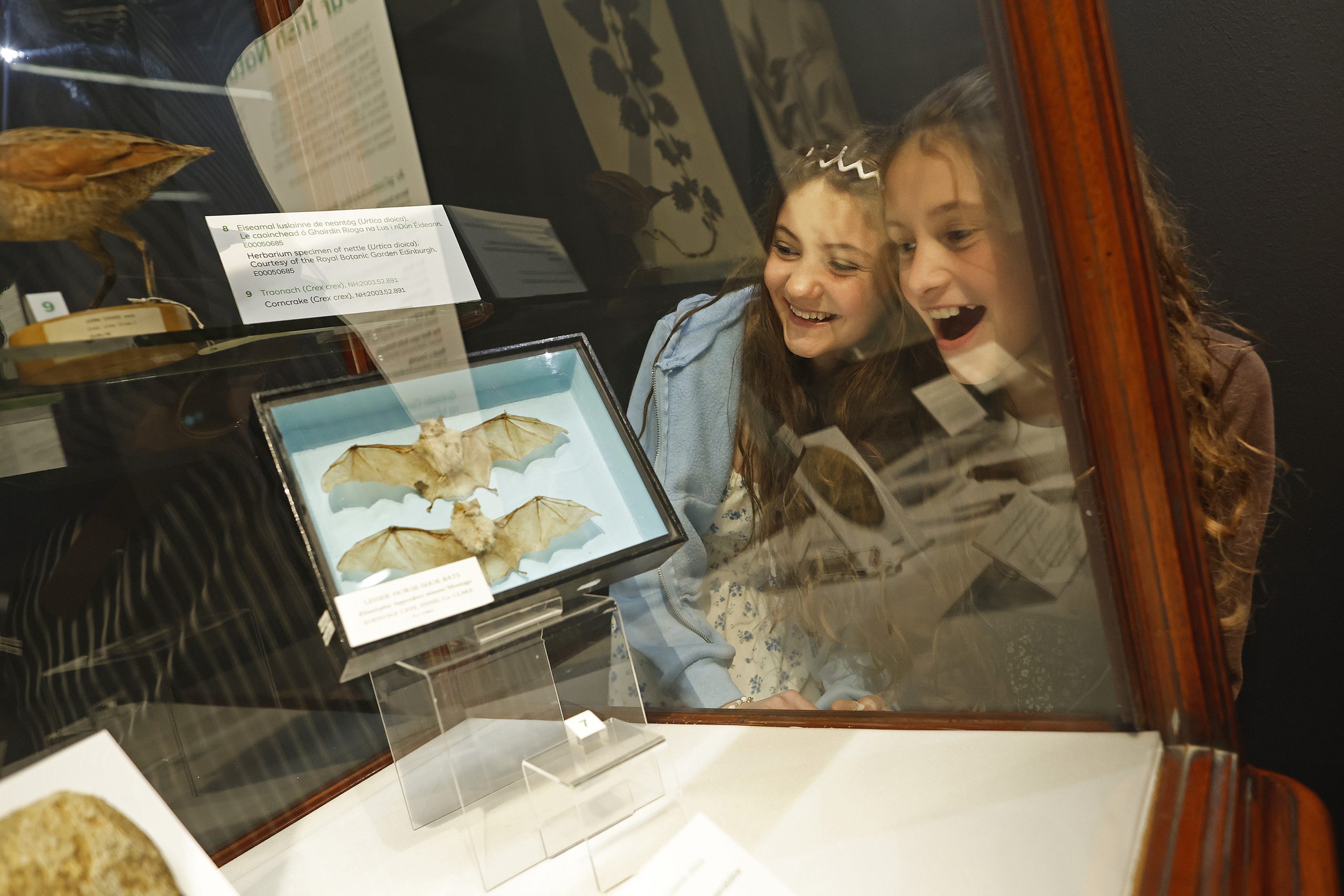 Image: Meadhbh Ruane (11) and her sister Fionnuala (12) from Belmont NS, Milltown, at the launch of Our Irish Natural History at the National Museum of Ireland, Collins Barracks. Image: ICAN/Julien Behal.