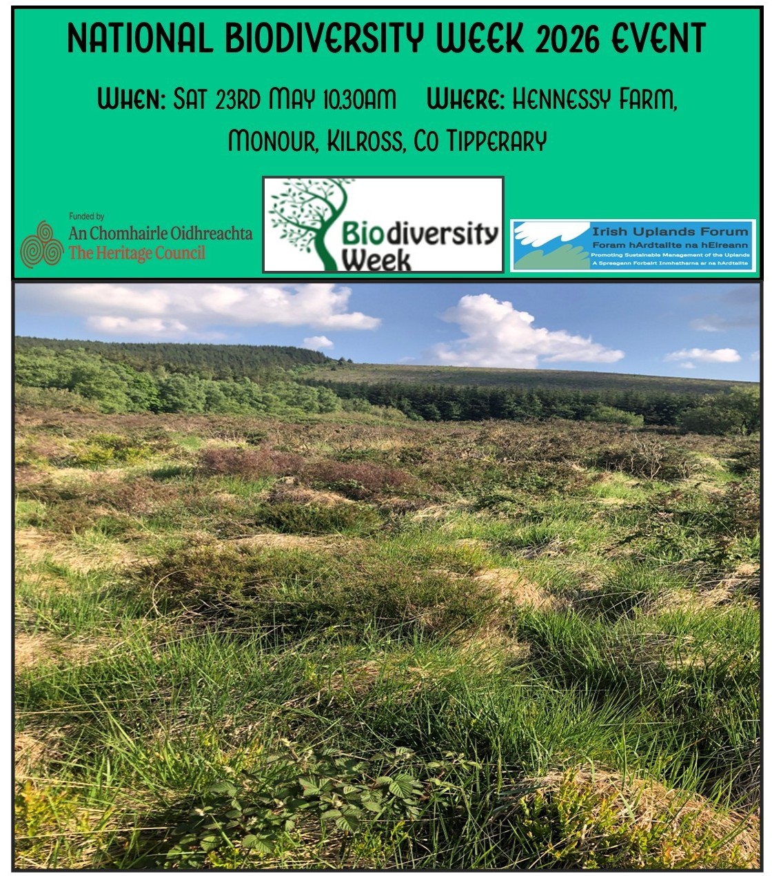Trip to Tipp, a National Biodiversity Week event in the form of a tour of a Hill farm in Monour, County Tipperary. Eircode: E34R624.