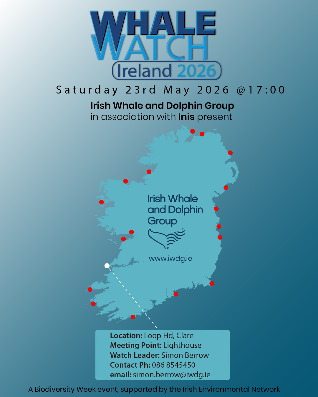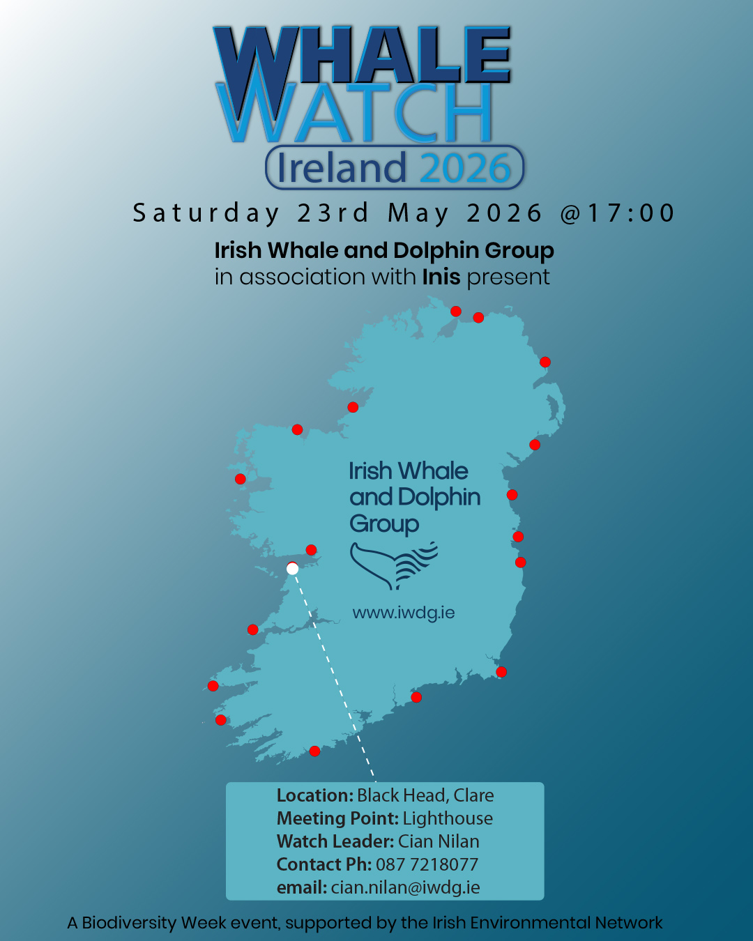 May 23 Whale Watch Ireland 2026, Loop Head, West Clare 5:00 pm - 7:00 pm Loop Head, meeting at lighthouse Event Details Get Directions