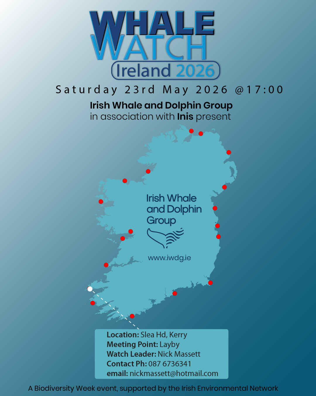 May 23 Whale Watch Ireland 2026, Slea Head, Co. Kerry 5:00 pm - 7:00 pm Slea Head, meeting at layby Event Details Get Directions
